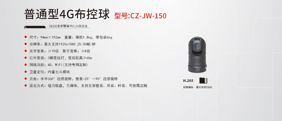 注:以上數(shù)據(jù)為參考指標,實際性能參數(shù)以咨詢結(jié)果為準。下一條: 中端型4G布控球CZ-JW-200